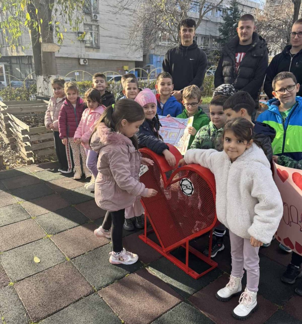 Младите техници лично монтираха металното съоръжение в двора на градината и се срещнаха с малчуганите, за да ги запознаят с идеята си и важността на рециклирането. С жеста си те не само подариха полезен контейнер, но и дадоха личен пример как малките стъпки водят до големи промени.
