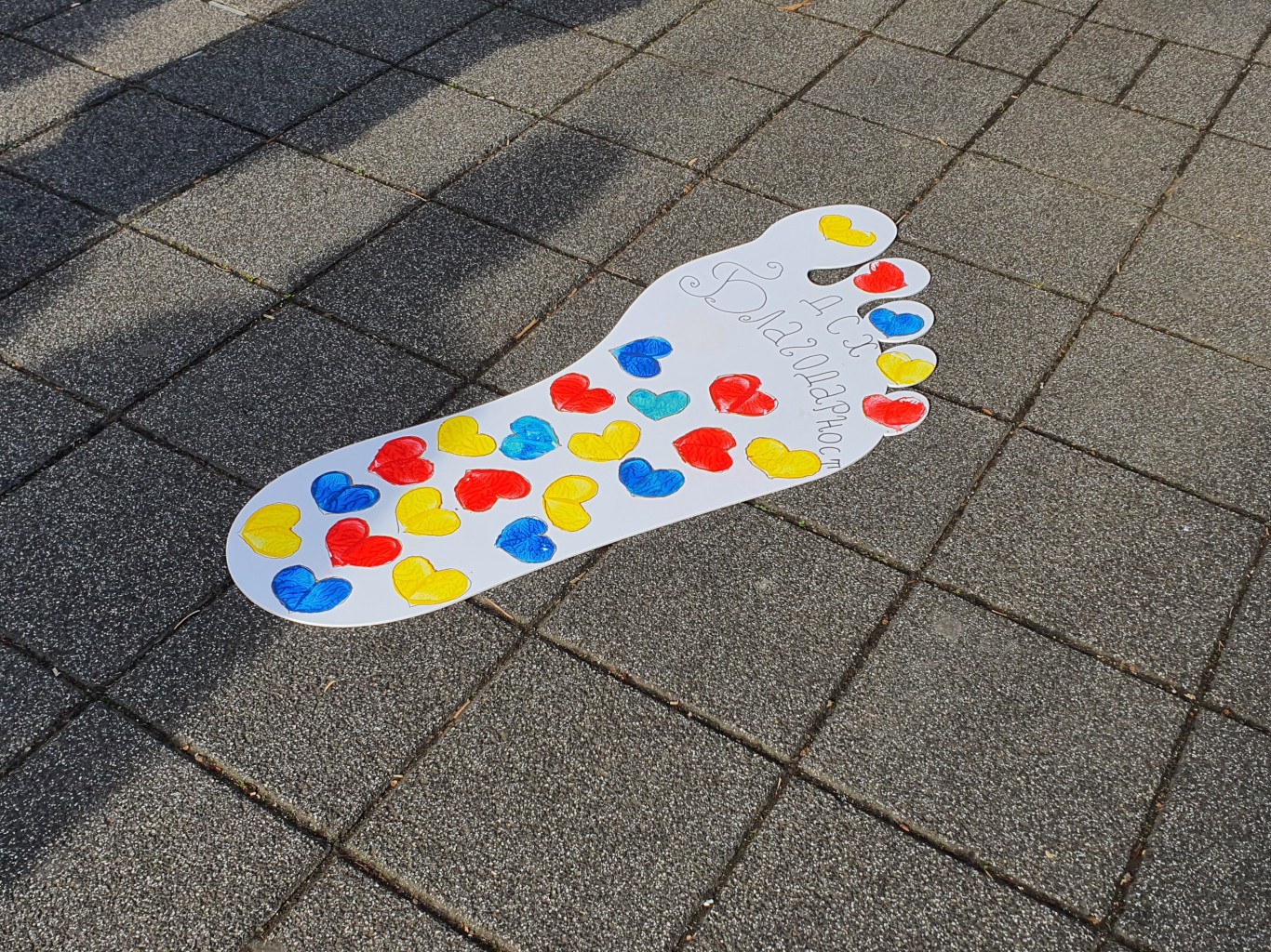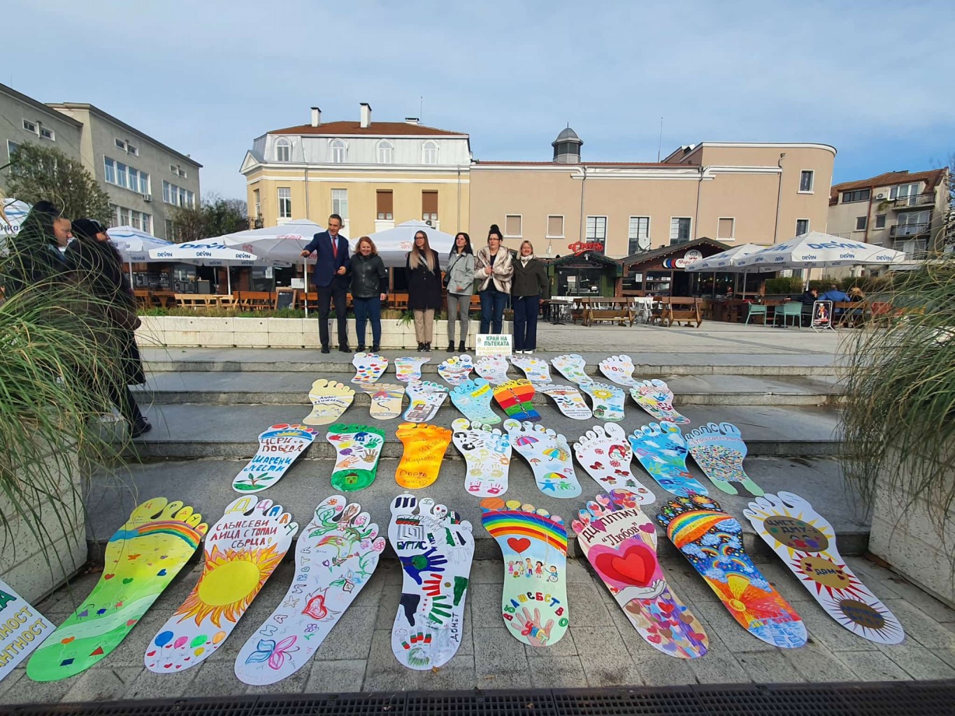 31 броя стъпала с размери 1,10 м. на 0,65 см., изрисувани предварително в социалните услуги, маркираха маршрута на символичната пътека – от площад „Атанас Сиреков“ – по ул. „Александровска“ – Компаса – до площад „Св. св. Кирил и Методий“. Пред Катедралния храм всички заедно пуснаха десетки шарени балони в небето с пожелание за повече толерантност към хората с увреждания.