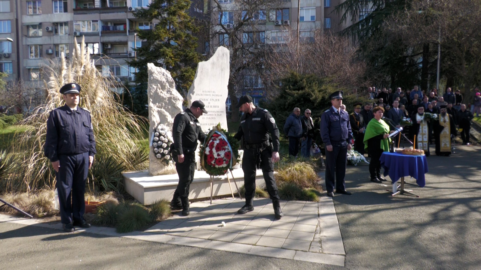 С днешното поклонение Бургас отново си спомни за двама полицаи, чиито имена остават свързани с дълга, саможертвата и цената на службата в името на обществото. Паметникът край „Трапезица“, открит година след трагедията, продължава да напомня за Атанас Градев и Йордан Илиев и за това, че зад униформата стоят хора, платили най-високата цена в изпълнение на дълга си.
