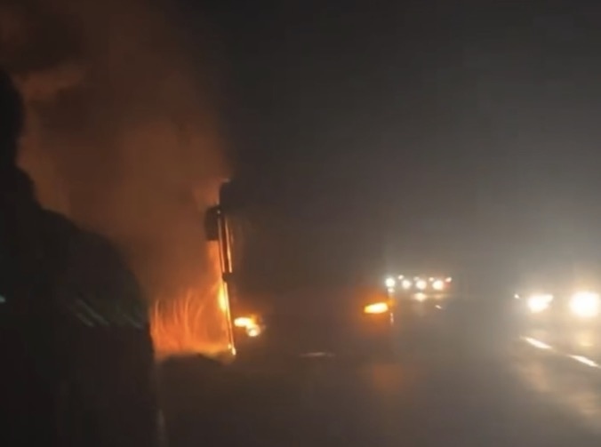 Междуградски автобус с пътници пламна в движение в района на Айтос. Инцидентът е станал вчера, около 20:00 ч., между разклона за с. Миролюбово и с.